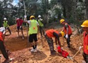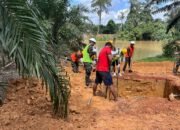 Personel Kodim 1015/Sampit bersama masyarakat setempat tampak bahu-membahu melaksanakan penggalian lubang pondasi sebagai tahap awal pembangunan jembatan yang selama ini sangat dinantikan warga.