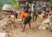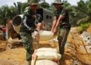 Kotawaringin Timur – Anggota Satuan Tugas (Satgas) TMMD Reg ke-127 Kodim 1015/Sampit melaksanakan penurunan material semen yang akan digunakan untuk Pembuatan Siring Badan jalan, bertempat di Desa Tri Buana, Kecamatan Telaga Antang, Jum’at (13/02/2026).