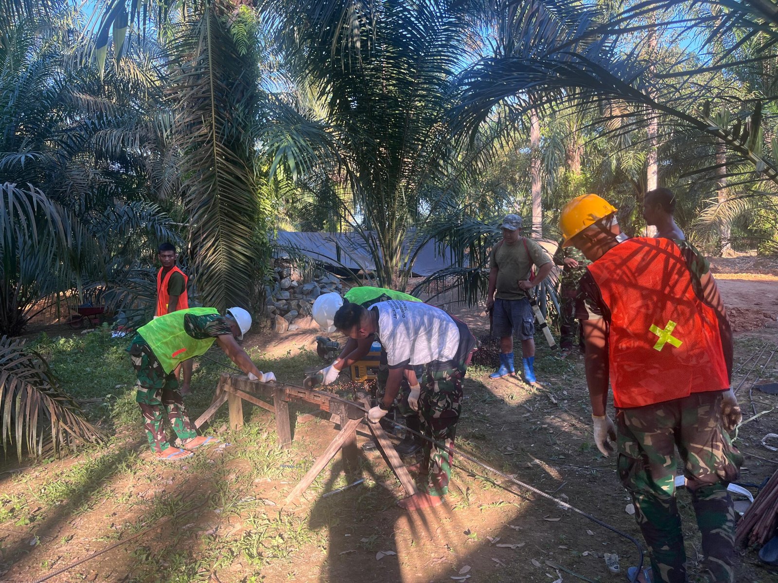 Danpos Ramil Telaga Antang Kodim 1015/Sampit, Serma Ahmad Zairosi terus hadir dan aktif terlibat di tengah kegiatan pembangunan. Tidak sekadar memberi motivasi dan arahan, ia juga turun langsung membantu pekerjaan di lapangan, mulai dari menyusun pola anyaman hingga memastikan posisi besi sesuai dengan desain. Kehadirannya menjadi penggerak semangat sekaligus mempererat sinergi erat antara TNI dan masyarakat dalam mempercepat pembangunan desa yang berdampak langsung pada kesejahteraan warga.