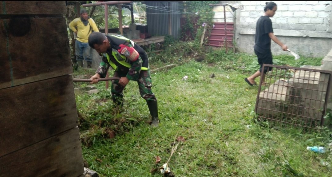 Kegiatan karya bakti tersebut dilakukan bersama warga sebagai bentuk kepedulian Babinsa terhadap kebersihan dan kenyamanan lingkungan desa binaan.
