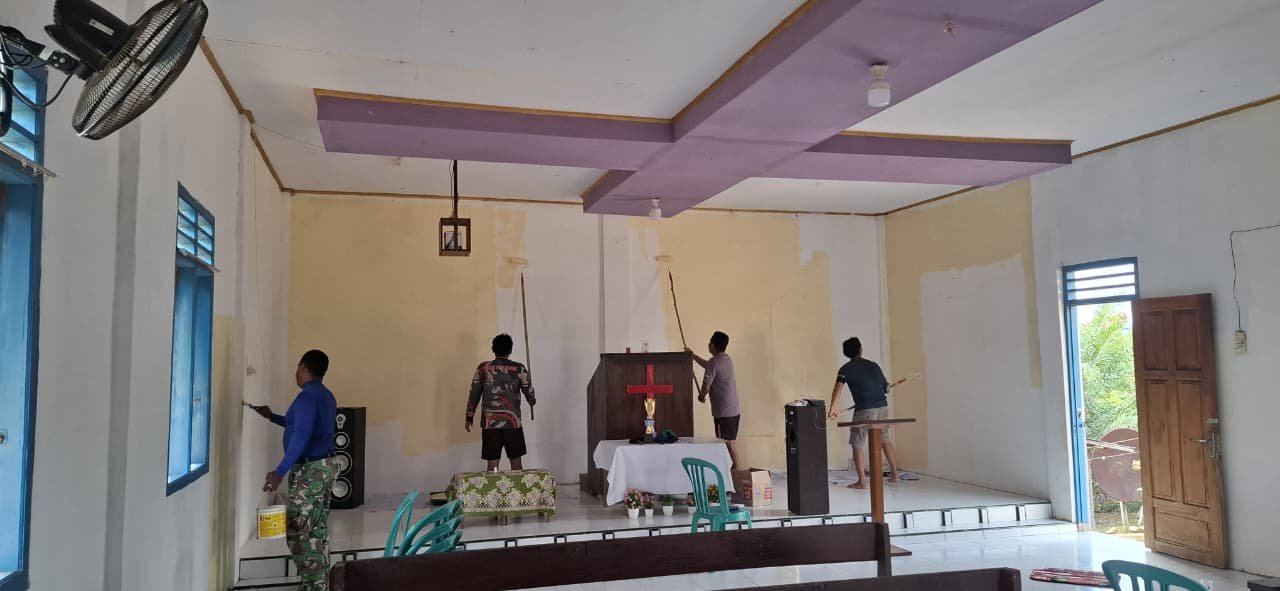 “Proses pengerjaan dalam sasaran tersebut adalah permintaan dari warga setempat berupa pengecatan dinding gereja di dalam ruangan maupun luar ruangan. Sehingga terlihat tetap terawat dan bersih,” ungkap Pasiter Kodim 1015/Sampit, Kapten Inf Sujarwo