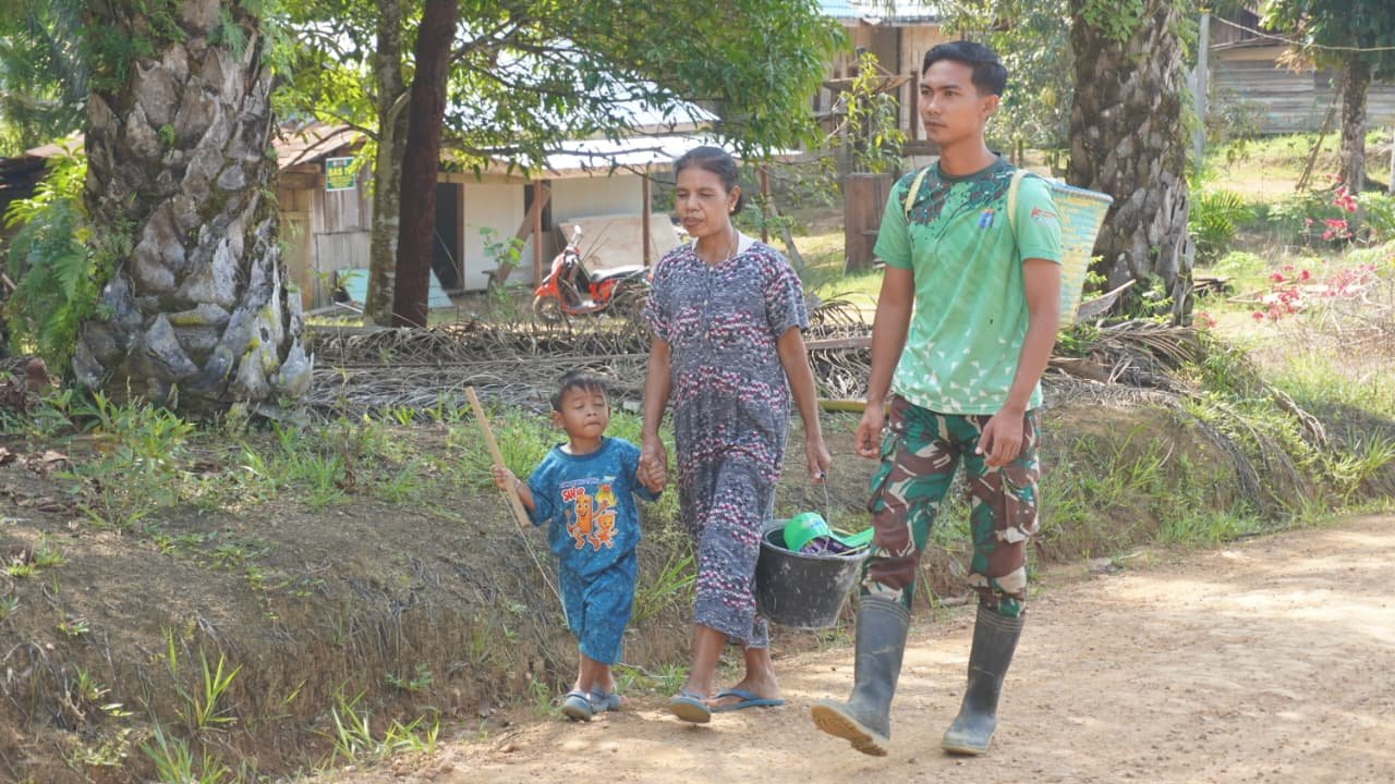 Kotawaringin Timur – Kedekatan Satgas TMMD Reguler ke-127 Kodim 1015/Sampit dengan masyarakat kembali terlihat disela pembangunan RTLH, seorang anggota Satgas membantu warga yang melintas membawa tas Lanjung yang sedang melintas di saat proses pengerjaan Rumah Tidak Layak Huni. Kamis (05/03/2026)
