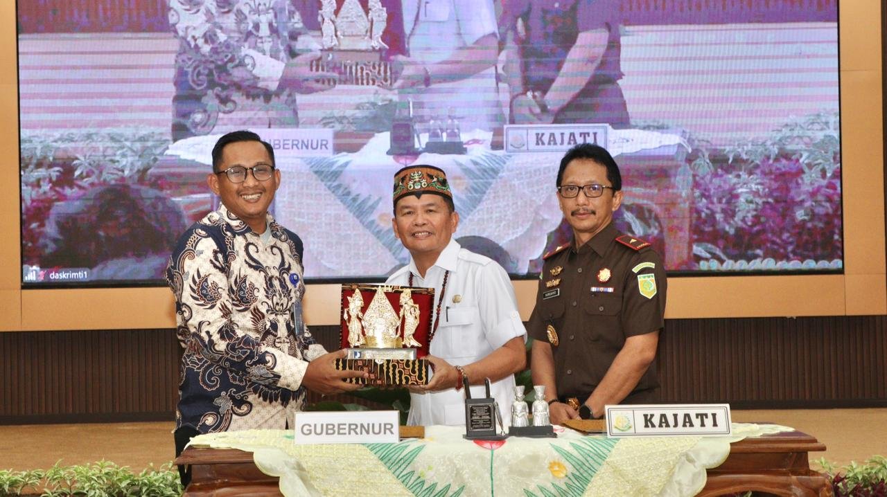 Foto: Gubernur Kalimantan Tengah H. Agustiar Sabran A.,S.Kom; Direktur C pada Jaksa Agung Muda Tindak Pidana Umum Agoes Soenanto Prasetyo, S.H., M.H.; Kepala Kejaksaan Tinggi Kalimantan Tengah Nurcahyo Jungkung Madyo S.H,M.H,Pada saat penandatangan kerjasama antara kejaksaan negeri se-Kalimantan Tengah di Provinsi Kalimantan Tengah.