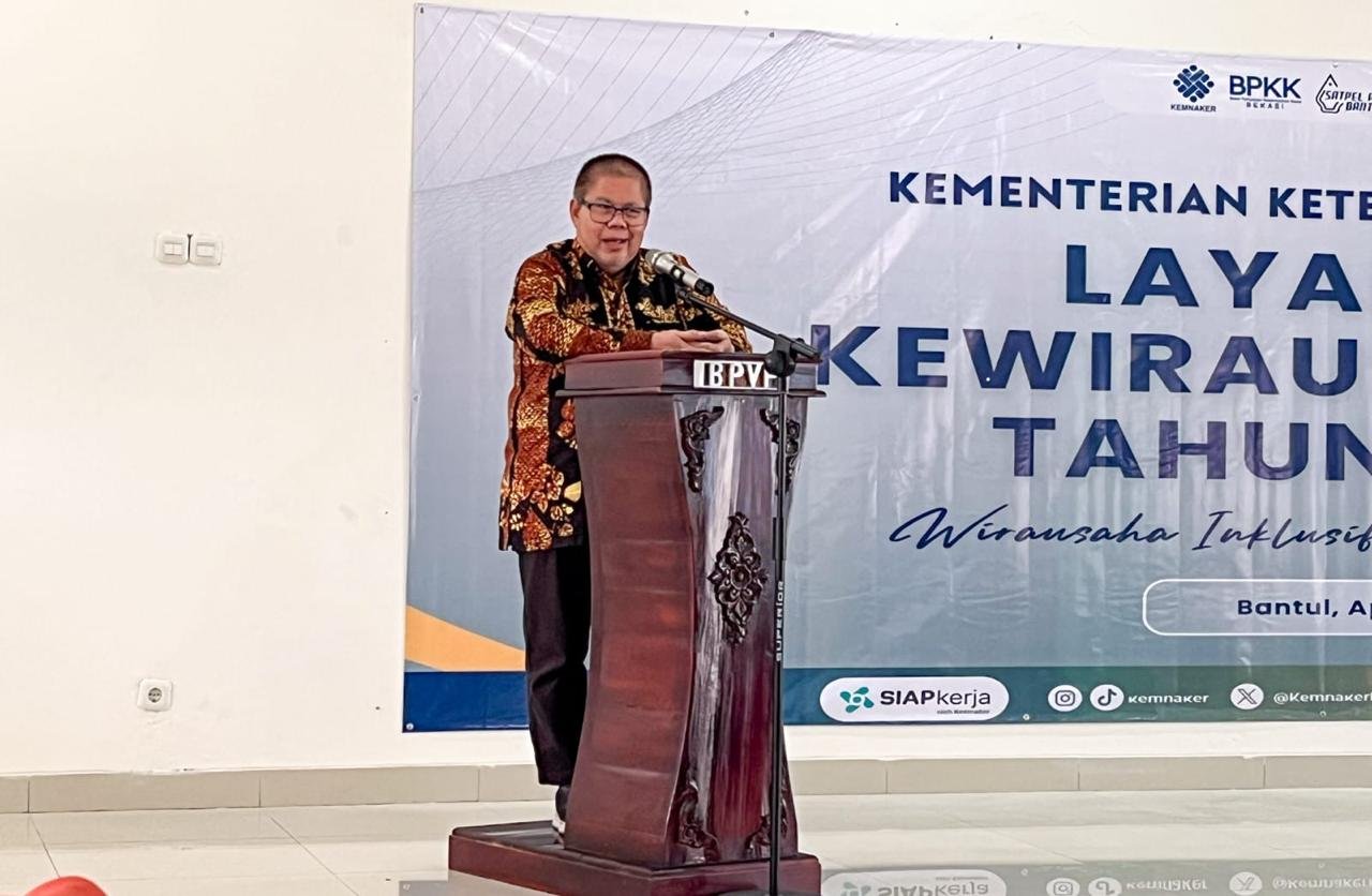 Hal tersebut disampaikan Staf Khusus Menteri Ketenagakerjaan, Sukro Muhab, saat membuka Kegiatan Layanan Kewirausahaan 2026 bertema “Wirausaha Inklusif, Tumbuh Bersama”, di Bantul, Jumat (17/4/2026).
