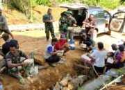 Dengan semangat yang tinggi anggota Satgas terus berjibaku untuk menyelesaikan pembangunan, agar warga bisa segera menikmati fasilitas yang sudah dibangun oleh anggota Satgas TMMD.