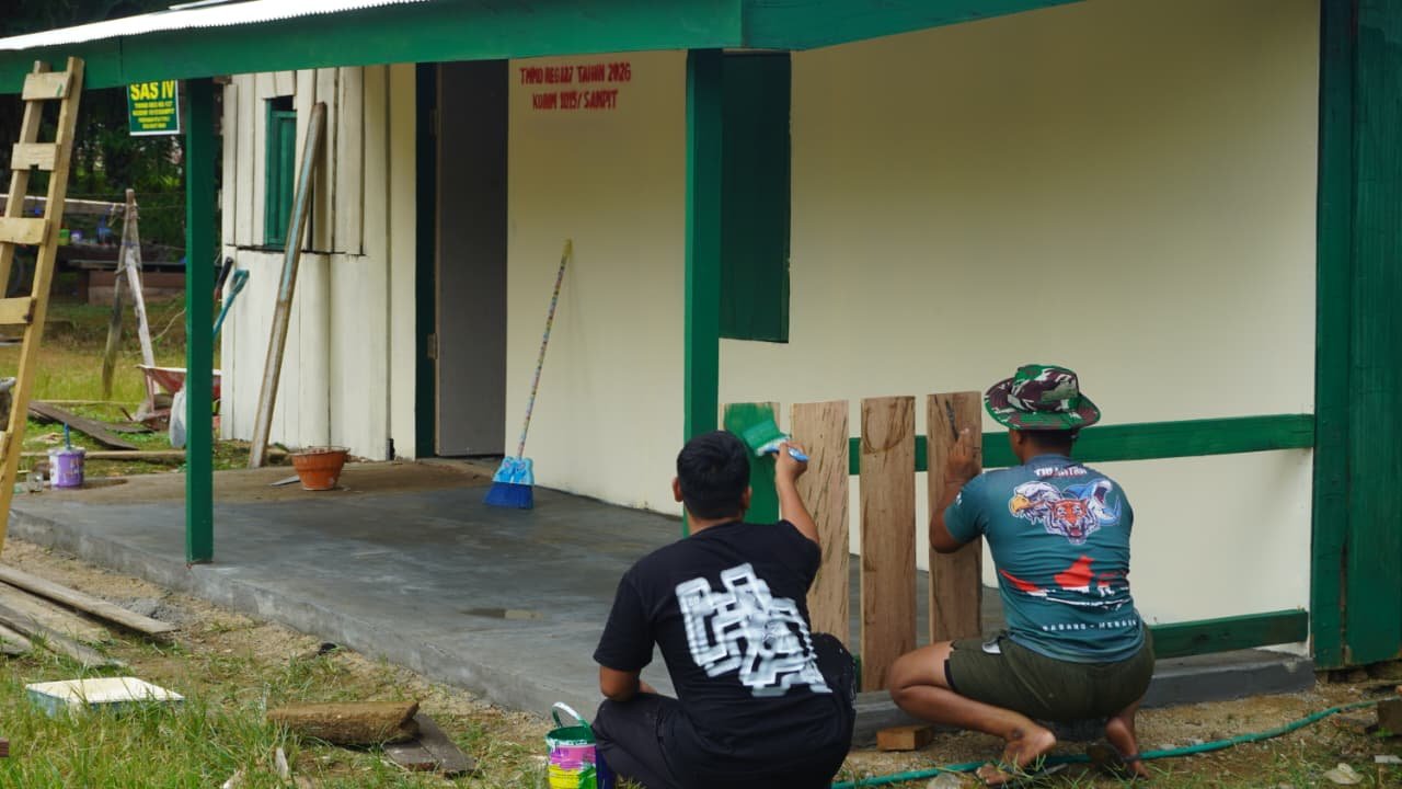 Kotawaringin Timur – Program TNI Manunggal Membangun Desa (TMMD) ke-127 Kodim 1015/Sampit terus menunjukkan progres positif. Salah satu sasaran fisik berupa rehabilitasi Rumah Tidak Layak Huni (RTLH) di Desa Bukit Indah Kecamatan Telaga Antang, Kabupaten Kotawaringin Timur, kini telah memasuki tahap finishing, Senin (09/03/2026)
