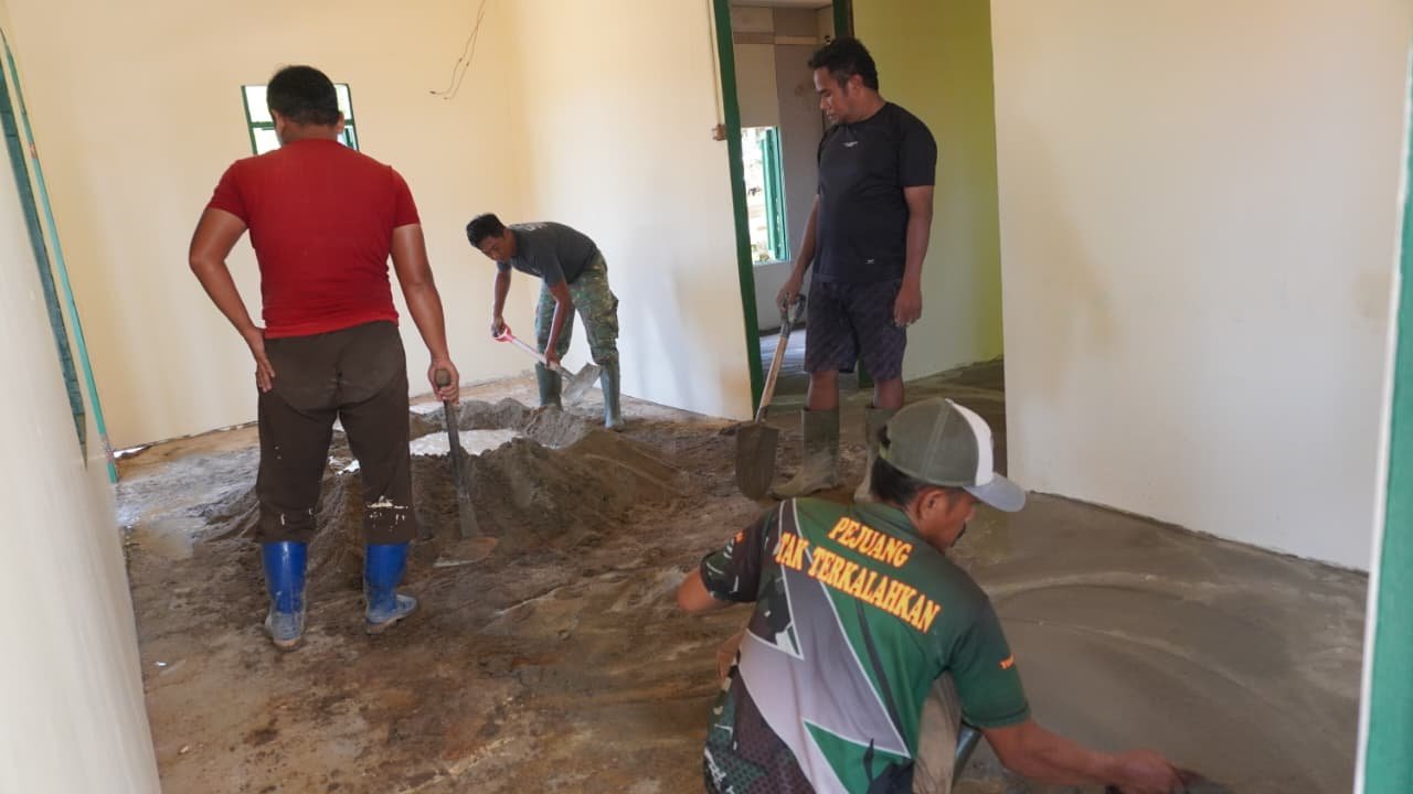 Satgas TMMD Reg-127 Kini Fokus Finishing Plester Lantai Rumah Bapak Sumardi