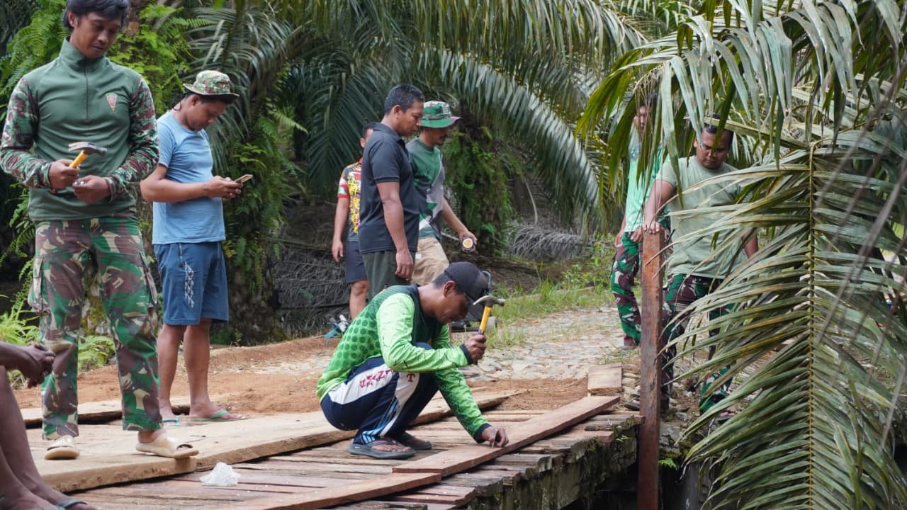 Kotawaringin Timur-Pembuatan jembatan Di Sasaran TMMD Reguler ke-127 saat ini sudah sampai pemasangan lantai jembatan. Tim Satgas TNI Manunggal Membangun Desa (TMMD) Kodim 1015/Sampit, hingga Saat ini masih terus bekerja untuk menyelesaikan pembangunan Tepat waktu l, Sabtu (07/03/2026)