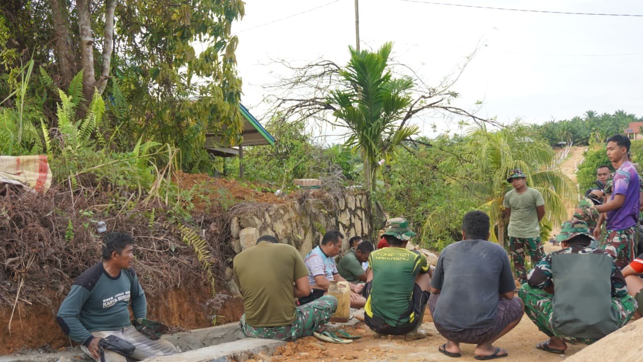 Meskipun menjalankan tugas berat di lapangan, personel Satgas tetap menjaga interaksi dengan masyarakat. Kegiatan komunikasi sosial ini menjadi bagian dari upaya mempererat hubungan antara TNI dan rakyat, sejalan dengan semangat gotong royong yang menjadi dasar program TMMD.