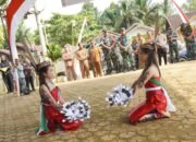 Kotawaringin Timur – Kedatangan Tim Wasev TMMD Ke 127 Kodim 1015/Sampit yang dipimpin oleh Brigjen TNI Totok Sulistiyono, S.H., M.M., M.I.P yang didampingi oleh Kepala Seksi Teritorial Korem 102/Pjg Kolonel Inf Noviandri disambut Tarian Adat Dayak yang bertempat di Balai Desa Tri Buana, Kecamatan Telaga Antang, Kabupaten Kotawaringin Timur, Selasa (03/03/2026)